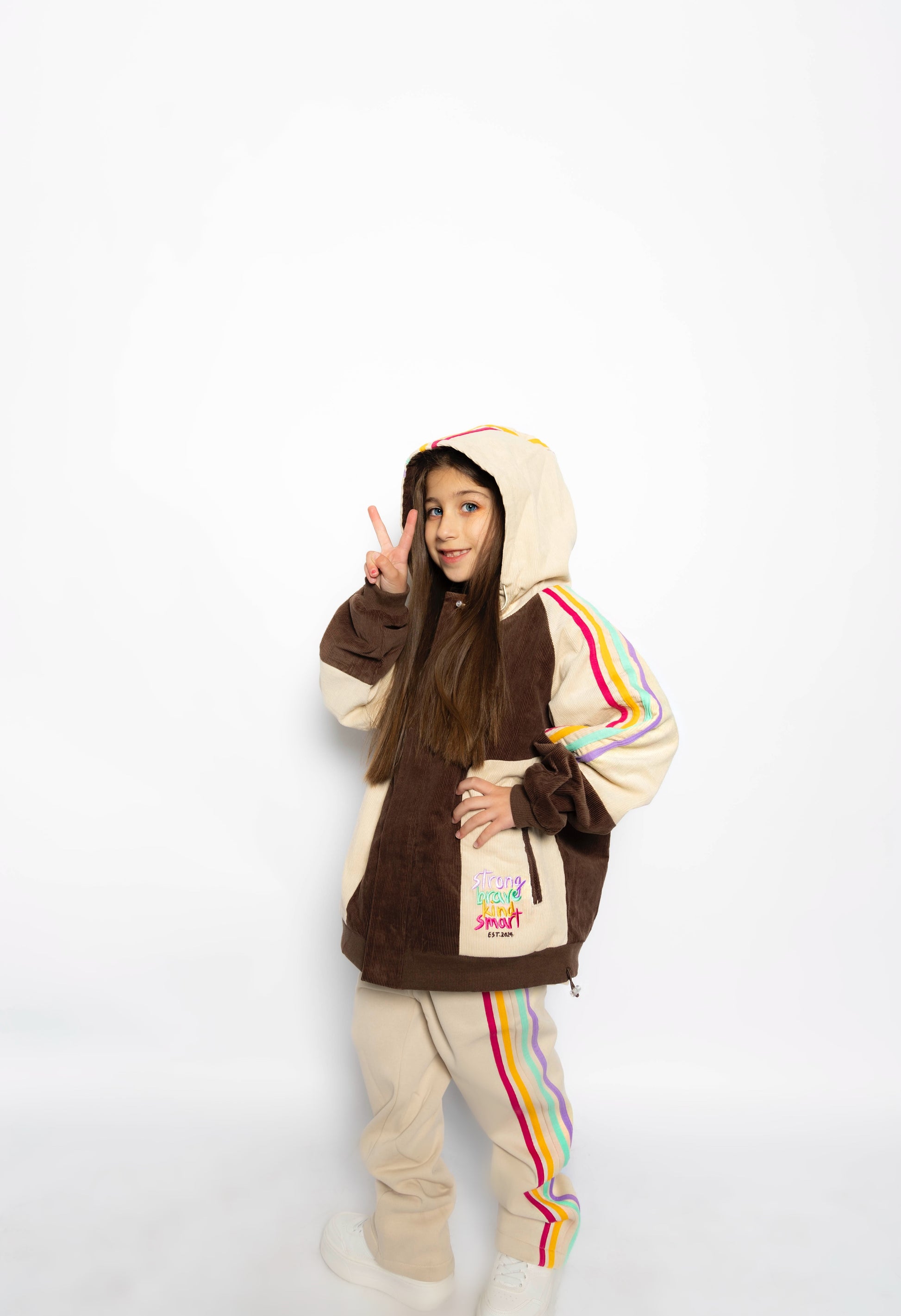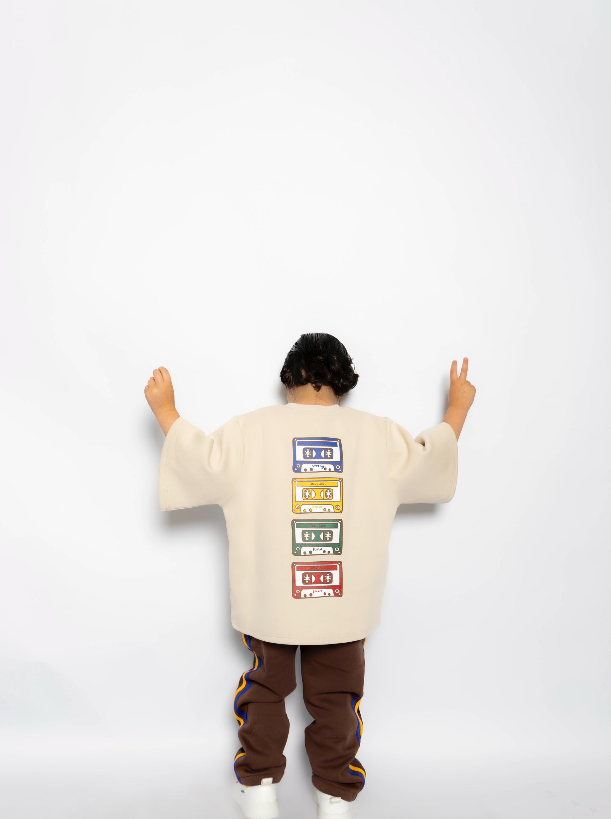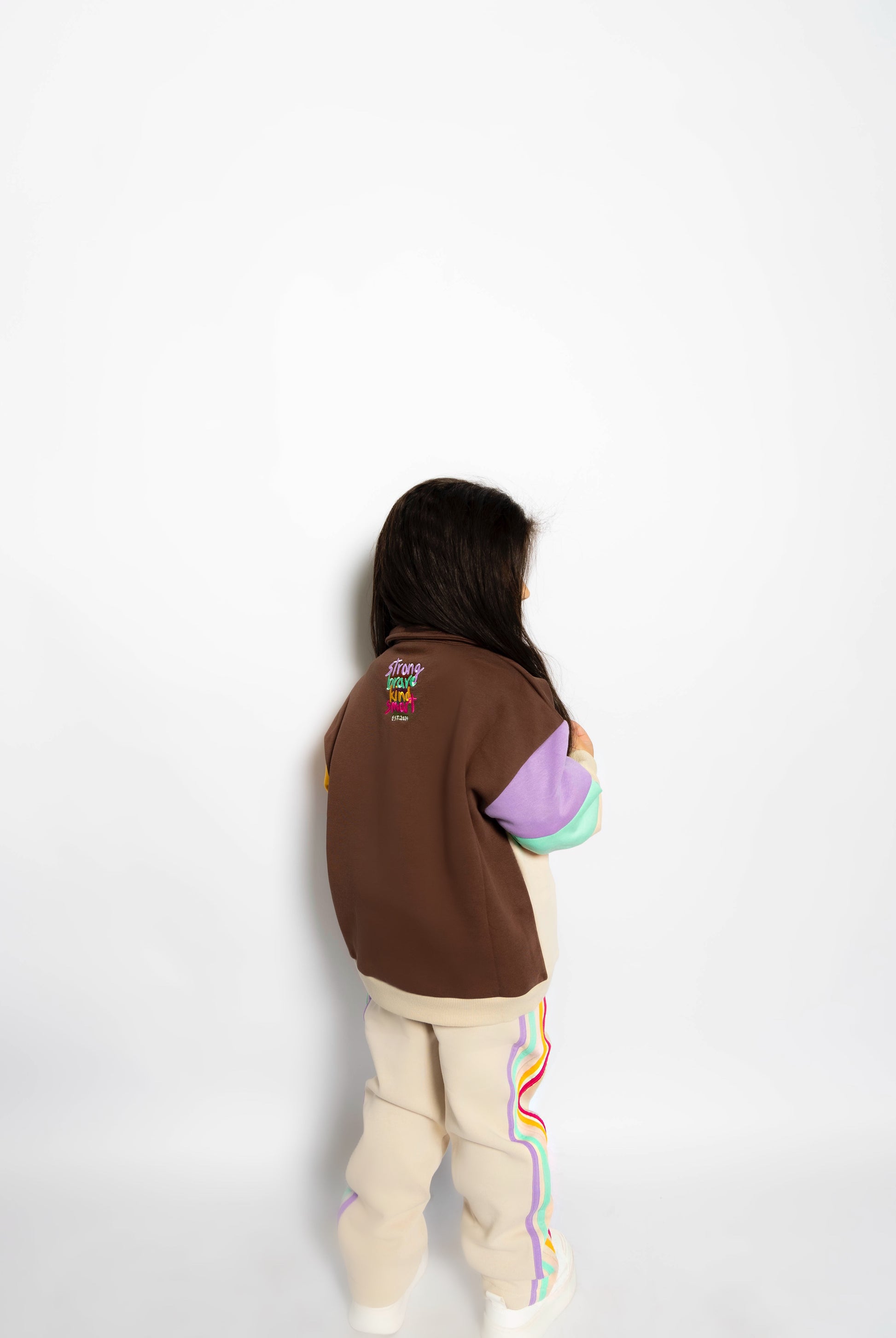 Channelling the bold, carefree spirit of the '90s, our wide-legged kids' track pants are made from the thickest, most premium cotton for ultimate warmth and comfort. Retro piping along the sides adds a nostalgic touch, while the adjustable drawstring ensures the perfect fit. Designed to pair seamlessly with our Half-Zip Jumper, these track pants are available in two iconic colour palettes: Fresh Prints and Bubble Pop.